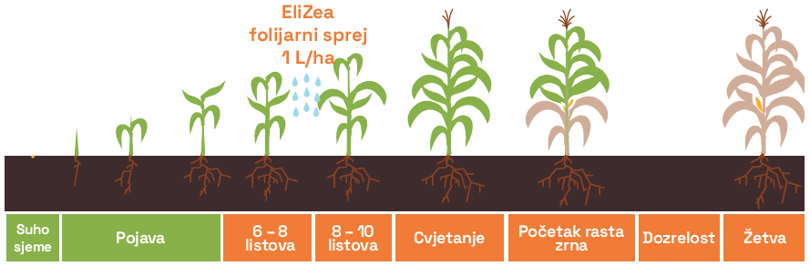 EliZea za kukuruz zrno je proizvod tvrtke Elicit Plant osmišljen za borbu protiv stresa uzrokovanog nedostatkom vode i uštedu potrošnje vode za 20%. Smanjujući evapotranspiraciju, potičući razvoj korijena i poboljšavajući učinkovitost korištenja vode, EliZea jača otpornost biljke i osigurava potencijal prinosa sve do žetve.