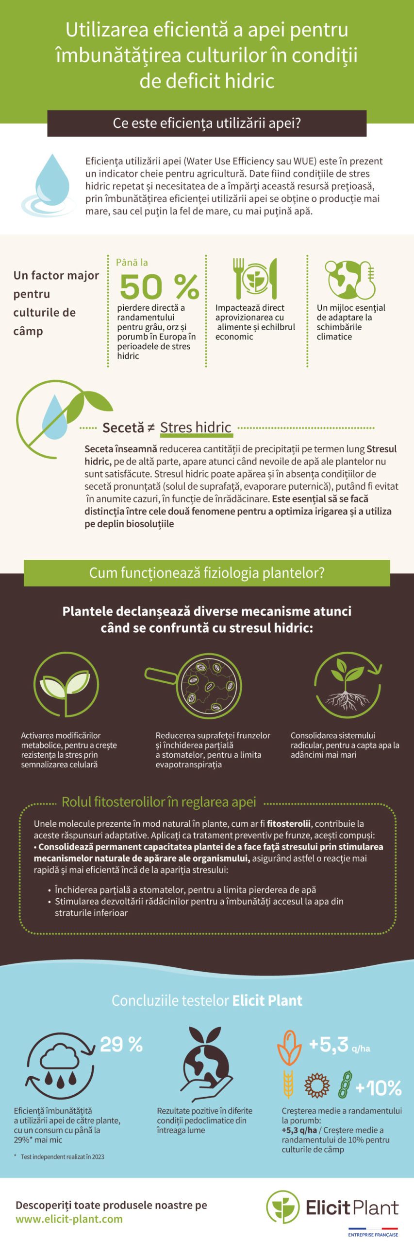 Anumite molecule prezente în mod natural în plante stimulează și întăresc aceste mecanisme. Este cazul, în special, al fitosterolilor. Aplicat preventiv pe frunze, acest principiu activ de origine vegetală, exploatat de Elicit Plant, declanșează, imediat după aplicare, mecanismele fiziologice de răspuns la stres, în mod anticipat. Planta se pregătește astfel și se adaptează la acest context „fictiv”, limitându-și evapotranspirația și dezvoltându-și rădăcinile, ducând astfel la economisirea resurselor de apă și la o rezistență sporită în perioadele de secetă. Acest lucru îi va permite plantei, de asemenea, să reacționeze mai rapid și mai eficient când apare un stres real. Asociind astfel înțelegerea aprofundată a fiziologiei vegetale cu inovația biologică, se deschid noi căi pentru a consolida culturile în mod durabil.