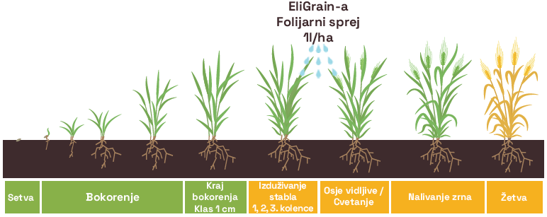 Njegov jedinstven način delovanja pomaže biljkama da maksimalno povećaju efikasnost u korišćenju vode. Kroz podsticanje prirodnih mehanizama zaštite, EliGrain-a ublažava uticaj stresa od suše, čime se čuva kvalitet roda.